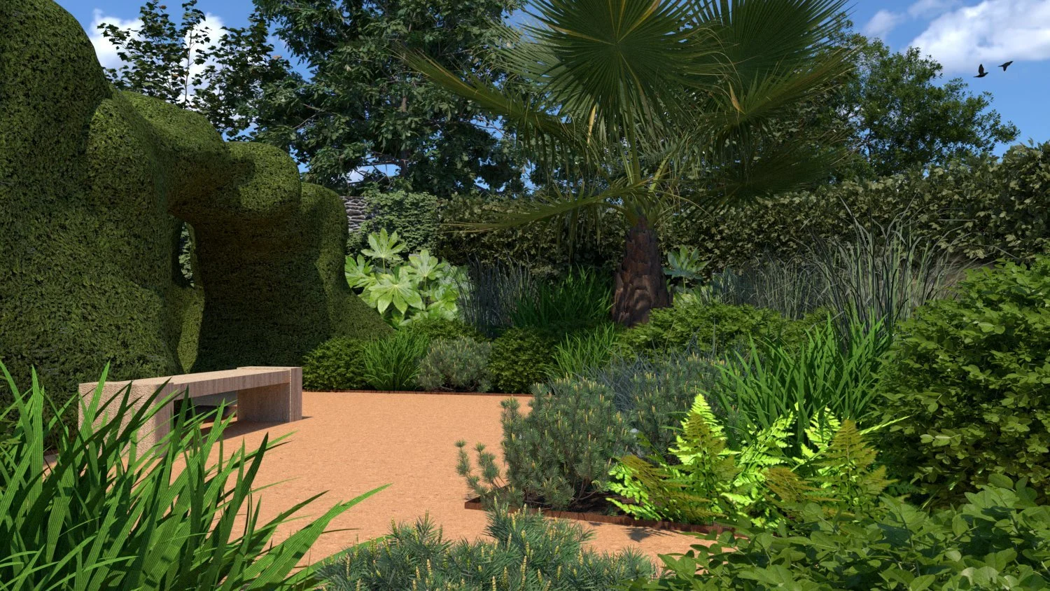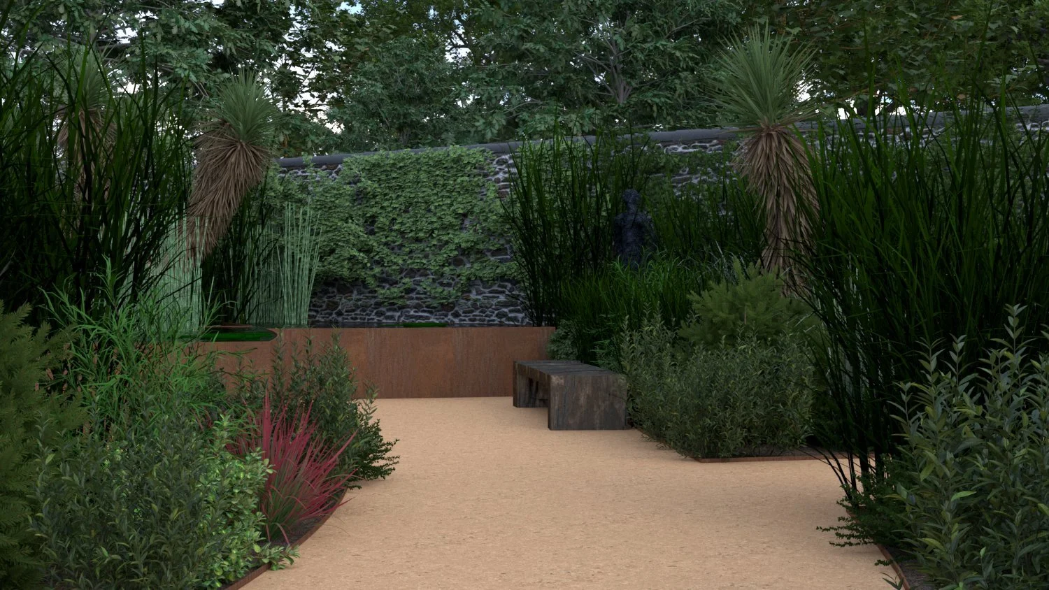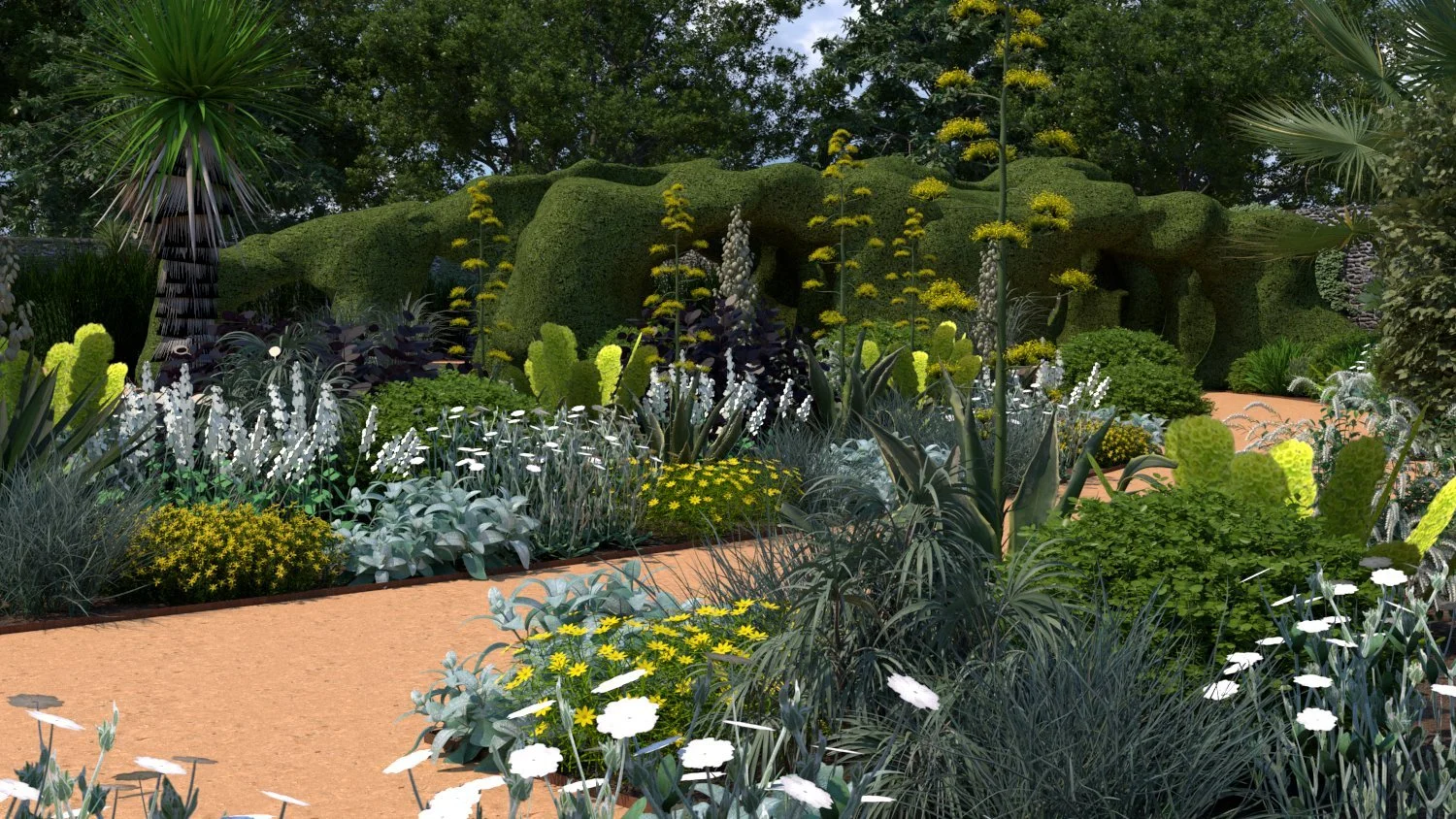 The Shutter, inspired by Lee’s experience as a war-time photo-journalist, is dark, brooding and secretive, with towering plants to instil feelings of immersion and claustrophobia. Solarisation, inspired by Lee’s experimental photography with Man Ray, has a sense of over-exposure and is intended to be uncomfortably bright, using plants with silvery or grey-green foliage to reflect the light. The Picnic, inspired by Lee’s success as an award-winning cook and entertainer, is a colourful, naturalistic meadow-inspired planting to reflect Lee’s lack of formality and vibrancy. Green Sorbet is a visual ‘palette-cleanser’ to mark the transition between the darkness of The Shutter and the brightness of Solarisation. Gauze is a light and airy veil of ornamental grasses at the threshold between Solarisation and The Picnic.